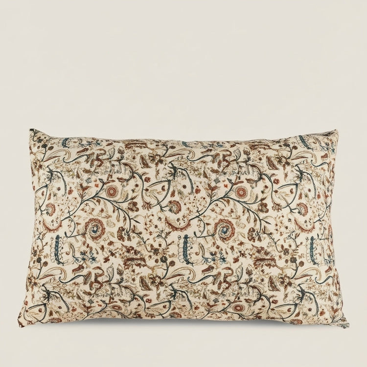 Housse de coussin floral Block Print indien FLORANCIA aux nuances rouges et bleu