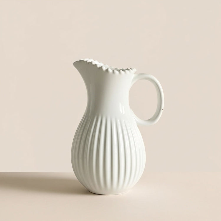 LIORA-Pichet en céramique blanc avec bord perlé