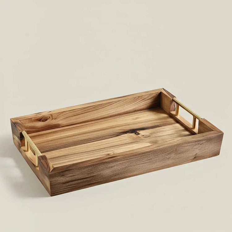 Fabriqué à partir de bois de Noyer de qualité supérieure, ce plateau dégage une élégance naturelle et une beauté intemporelle. Les riches nuances du Noyer offrent un fond chaleureux et accueillant, tandis que les poignées en cuivre ajoutent une touche de luxe et de sophistication.