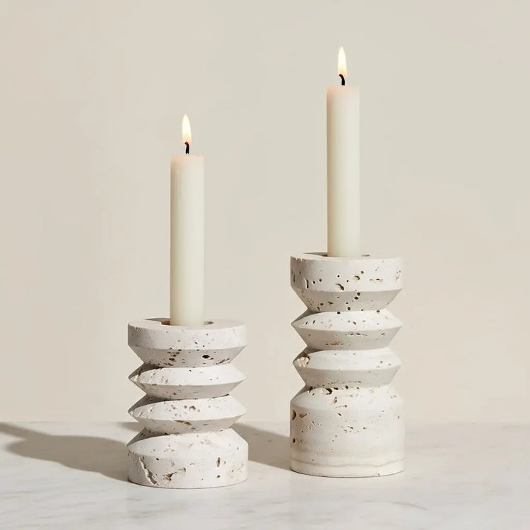 - Design sculptural : Les courbes géométriques du bougeoir en travertin lui confèrent un style épuré et moderne, tout en créant un impact visuel fort.